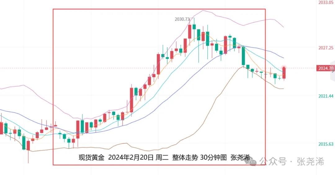 具体走势上,金价自亚市开于2016.98美元/盎司,则先行走弱于8点录得日内低点2014.86美元后,则回升转强,持续反弹,一路延续到美盘初时段录得日内高点2030.42美元,之后则遇阻回撤于2026美元一线上方震荡缩减,但在盘尾又再度走低,表现承压,最终收于2024.07美元,日振幅15.56美元,收涨7.09美元,涨幅0.35%。