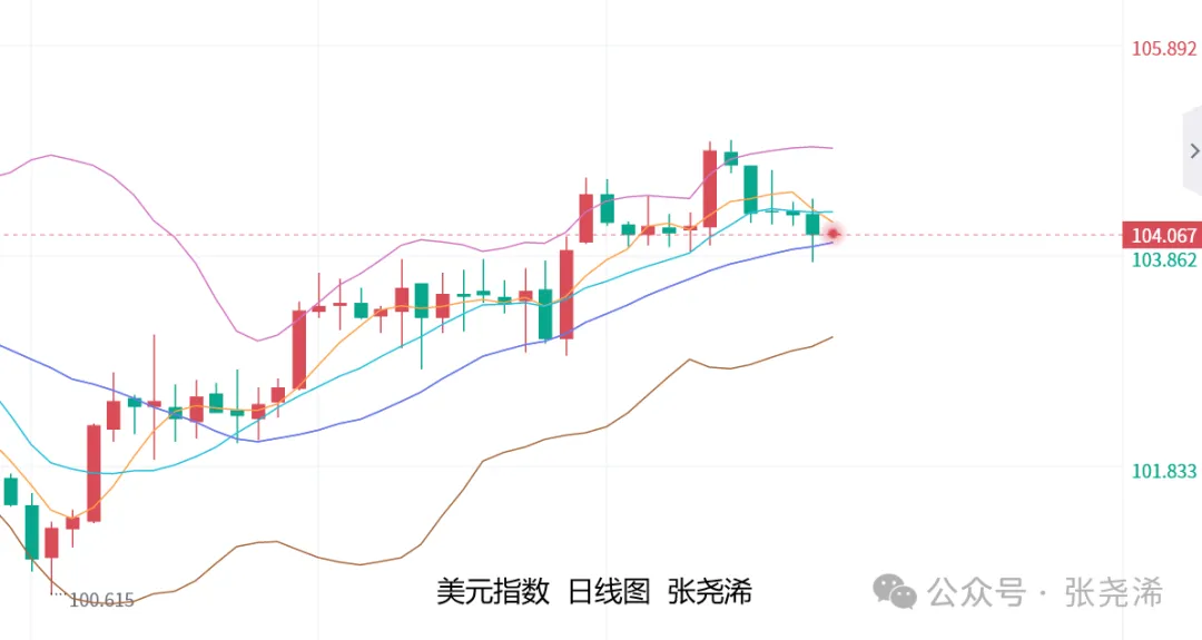 整体来看,美元指数方面,日图虽仍运行在反弹趋势及中轨上方,但主图面临短期均线压力,附图指标也转看空发展,周图连续两周的收取在反弹高位的冲高回落射击之星形态,也暗示了一定的反弹见顶风险,本周就此也表现走弱,则会对金价造成持续走强行情,将继续觊觎反弹触及2045/50美元附近目标。
