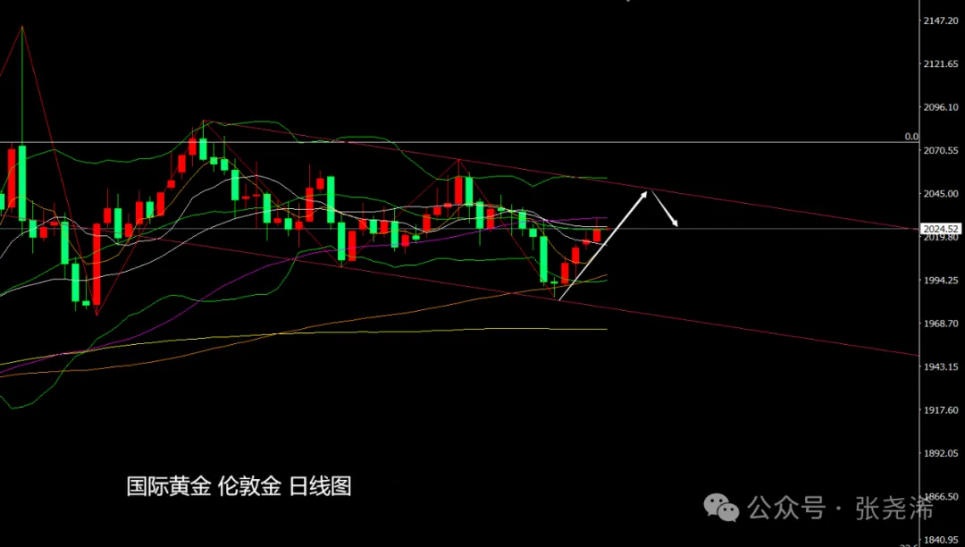 日内无重点留意数据及事件,仍将以周初的因素和市场预期走盘为主。并继续等待次日凌晨2点的美联储理事鲍曼参加关于“美联储观点”的讨论。及3点的美联储公布货币政策会议纪要。以寻找有关降息的进一步线索。如继续减弱或保持不急于降息的观点,则会令金价在周尾偏向承压,进行高空操作。反之保持低多等待触及趋势线压力目标。