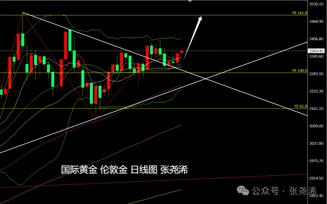 上交易日周三(6月11日):国际黄金反弹收涨,稳于中轨线支撑上方的同时,还收线于5-10日均线之上,这暗示多头力量增强,后市将保持看涨反弹,继续等待触及3435美元或3500美元目标位置不变。