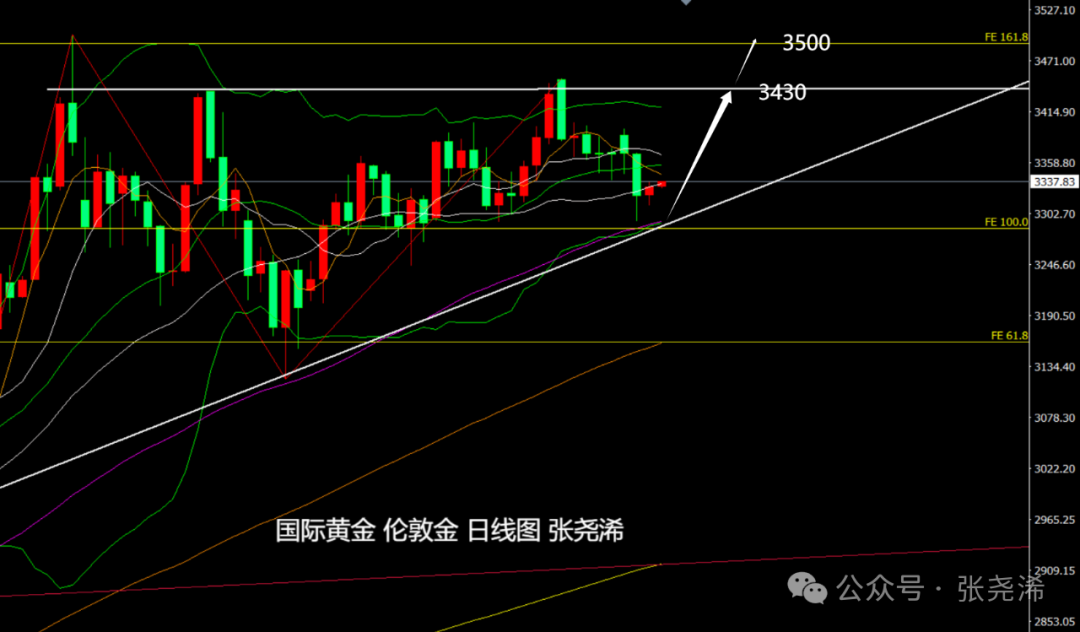 日图;金价近日连续回落走低,如期在触及60日和上升趋势线支撑附近止跌反弹回升,虽然ZZ指标未显示回落触底,但如再度回落走低,下方60日均线及上升趋势线支撑,也是再度入场看涨的机会,仍将有望再度上探3430或3500美元;