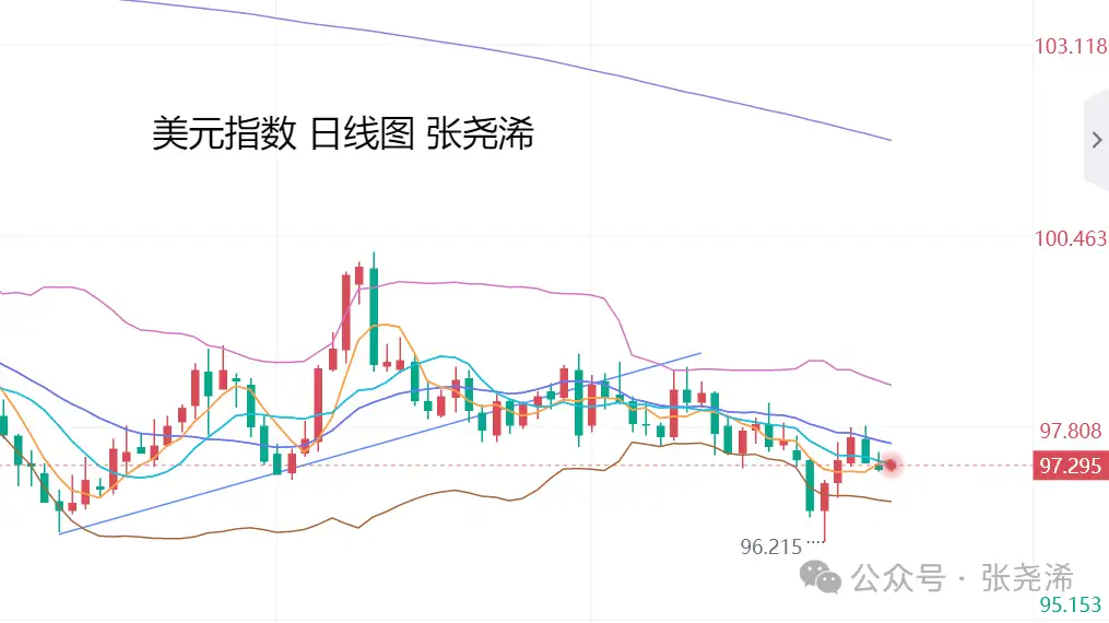 不过,个人认为,一时的调整和回撤,也仍然是为多头制造入场机会。其美元指数,日图走势整体震荡下行,仍处于回落趋势之中,周图也未转强,前景偏弱,将会为金价提供中期的看涨支撑。