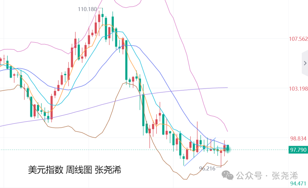 展望今日周四(10月2日):国际黄金开盘延续周三回撤动力,先行表现走弱,美元指数延续昨日触底回升之力先行表现走强,也对其产生一定压力,使其维持近数周的震荡区间之内,但由于周图走势持续的震荡,对于附图指标的多头信号来说,是在不断地消耗看涨动能,故此,对于中期来说,美元指数仍偏向再度向下走弱,而会支撑金价持续反弹攀升。