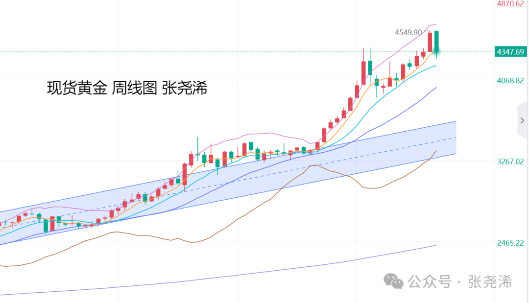 波幅再度加大,但其形态上,有再度收取止跌看涨的形态,对于后市来讲,黄金也有重新转看反弹的预期,但周图走势偏弱,也需留意再度的跳水行情,因而在重回4400美元上方收线前,或者是回落止跌并显示ZZ指标触底前,都先保持震荡调整为主。