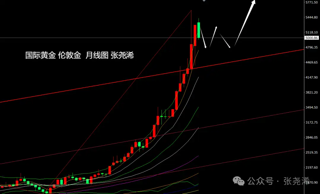 但反之如跌破趋势线支撑收线4300关口,则暗示牛市结束,将进一步跌至3500美元乃至更低位置3000关口。