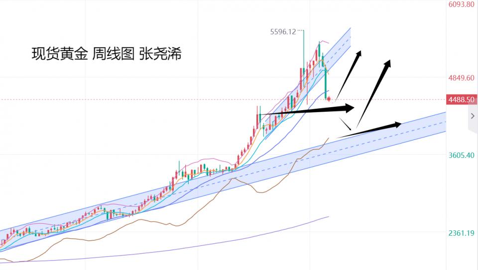 黄金市场上周:国际黄金大幅回落收跌,受到美国通胀数据的升温,美联储主席提及加息可能性,以及市场担忧冲突可能持续数个月,交易员就此预计10月底前美联储加息的概率为50%,且有可能在12月加息等利空消息导致大幅抛售。令金价当周下跌超500美金,并再度回踩临近30周均线支撑,空头力量加大,暗示后市偏向横盘震荡调整或再度走低下探。下方关键支撑4300美元跌破则将进一步跌至3800美元附近,上方则关注5000美元关口,重回上方则可续写牛市传奇。