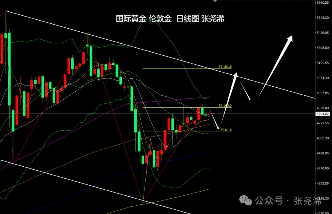 周图级别,金价本周维持反弹动力,但仍受阻于10周均线压力,在突破10周均线收线之前,仍面临回落调整至4450美元附近的风险。如突破10周均线阻力,则有望再度刷新历史高点。