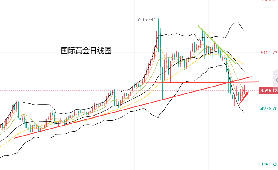 从之后的走势看,昨日周一欧盘盘中,黄金延续之前的反弹走势,从5427美元,继续涨至4580美元遇阻,此后金价震荡回落,跌至4493美元企稳;周二开盘后,黄金继续下探至4482美元企稳,此后短线拉升,最高涨至4619美元,遇阻后震荡回落,目前交投于4559美元。总体来看,黄金短线反弹,到达4600美元整数位置,与我们预期的方向一致。