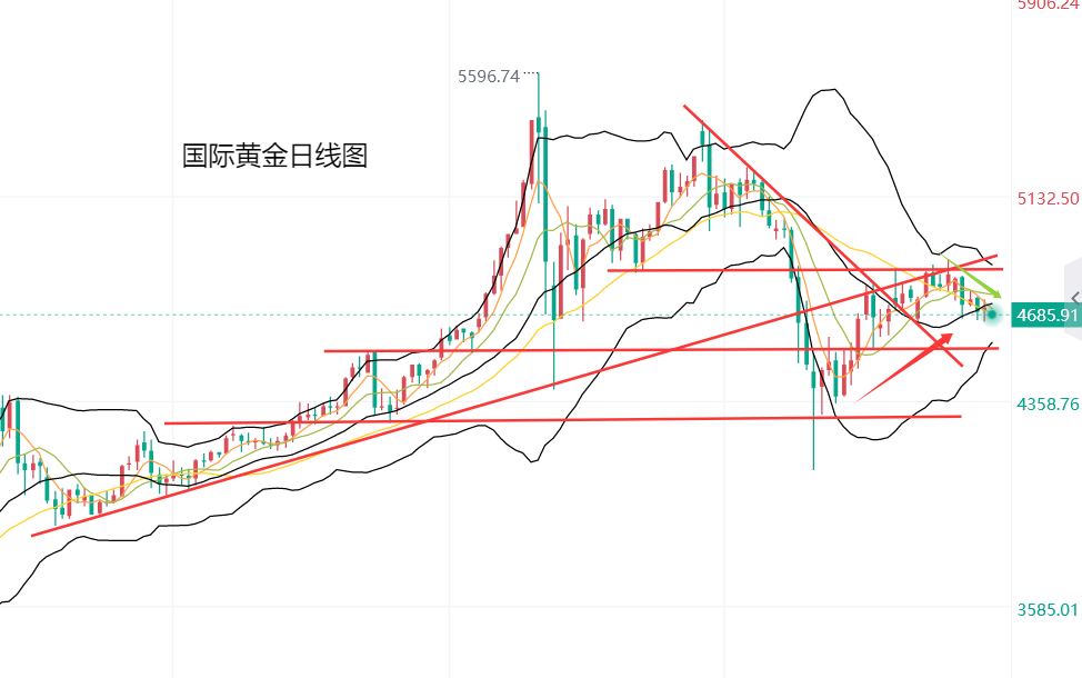 从之后的走势看,上周五美盘盘前,黄金反弹4718美元遇阻,跌至4690美元企稳后,黄金继续展开反弹,于美盘盘中刷新日高至4740美元,遇阻后金价震荡回落,收盘前跌至4705美元企稳;本周一黄金小幅低开低走,目前交投于4684美元。总体来看,黄金波动比预期更加平淡,金价短期继续保持承压震荡走势。