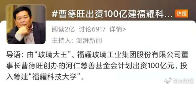 目前的情况就是福耀玻璃这样的企业太少,老老实实做实业的太少。还有曹德旺这个人,虽然不帅,也没有大背头,更没有爱马仕的皮带,不会带着老婆去乡下秀恩爱,可是人家敢捐款啊。12月4日,曹德旺表示要盖一座“福耀科技大学”,模仿德国职业教育模式,解决中国制造业人才学科跟不上市场需求的问题。曹德旺信誓旦旦地保证:“这将来会是中国最有钱的大学。”他准备捐100亿,而且是个人的钱!有人估算,最终可能会花掉150亿。此前,他也是逢灾必捐,98洪水、汶川地震、郑州雨灾,曹德旺都慷慨解囊。