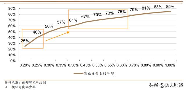 德邦证券研报显示,假设微信支付的成本费率为0.15%,按线下0.38%、线上0.6%的标准费率测算,腾讯线下、线上支付的毛利率分别可以达到61%、75%。
