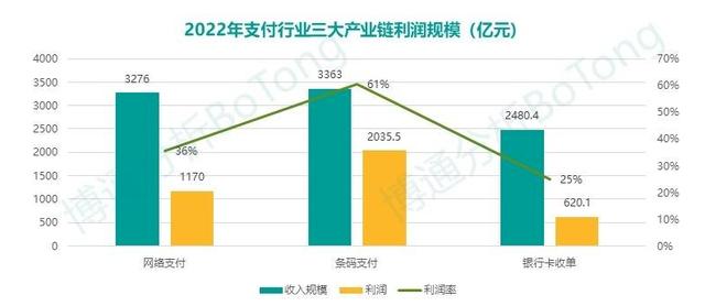 博通咨询披露的《非银行支付行业年度专题分析2023》显示,2022年,网络支付行业整体收入规模为3276亿元,扣除发卡服务费和网络服务费后,利润可达1179亿元。