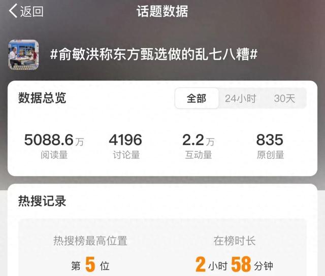其实这个数据是还不错的,只不过俞敏洪有一个执念,那就是董宇辉另起一摊了,东方甄选也应该继续领先。