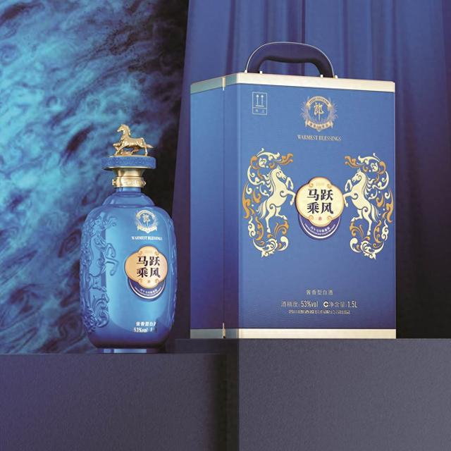 其中,“马跃乘风”丙午马年限量版,是本次系列中的顶级藏品,规格为1.5L,定价8999元/瓶,限量4000件。产品以新锐蓝色为主色调,寓意“奋进通达,前程万里”。郎酒将其定义为“高端奢香藏品系列的小批量勾调、限量典藏之作”,其稀缺属性最为突出,主要面向资深藏家与顶级礼赠市场,是收藏与投资的硬通货。