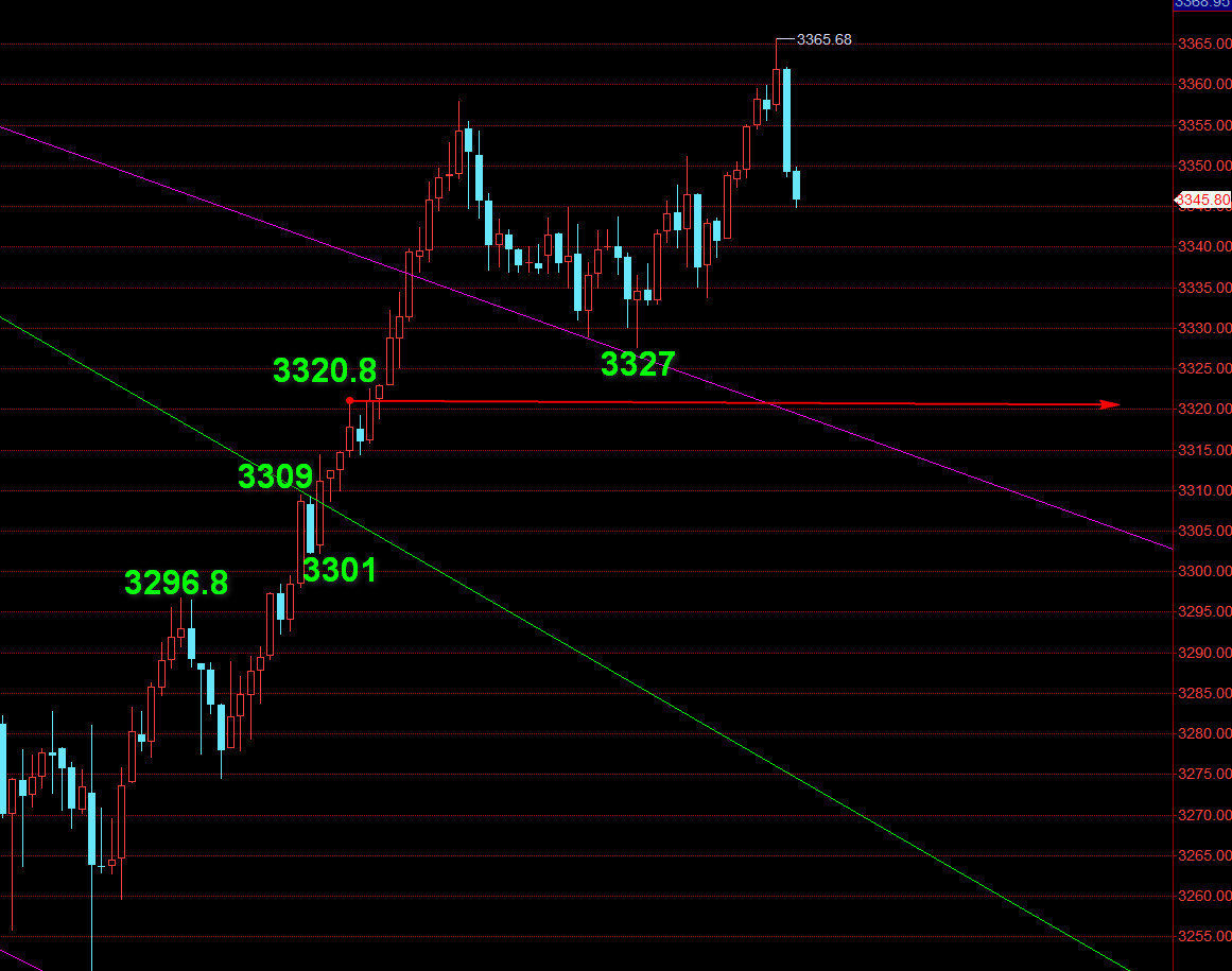 那么后面基本就要关注冲高回落为主了,其一,3451下跌的第一波低点3366压制下跌,其二就是上个月非农的高点3375/76测试下跌,下方的话由于昨天3320水平支撑涨过一次了,关键位置就上移3327美元,后面的话昨天低点3327不破反弹,破位的话基本上就要考验3310的支撑和3295的支撑再反弹。日内短线的话中间3340也是短线支撑,总之,今天冲高就是偏空处理,然后下方关注图中标识的相关位置。今天是一月一度的非农日,关注如何指引行情吧,看是上涨走势延长,还是修正扩大化。先这么个思路,后面看情况再短评跟进和修正。