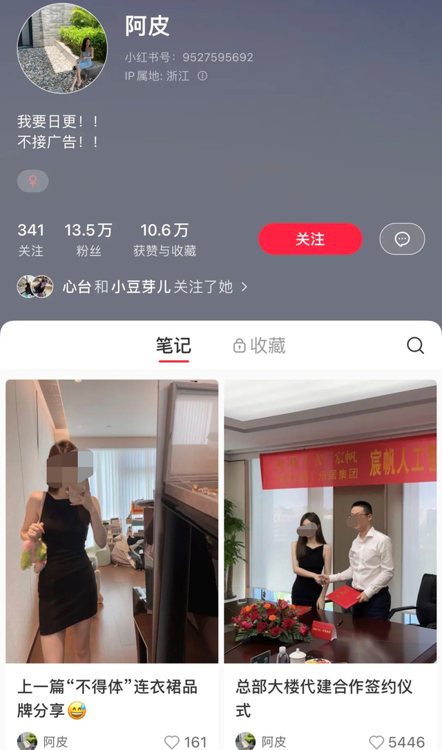 2022年7月,小红书出现一个名为“阿皮”的账号,以第一人称发布了雪梨的日常照片和视频,目前已经积累了13.5万位粉丝。