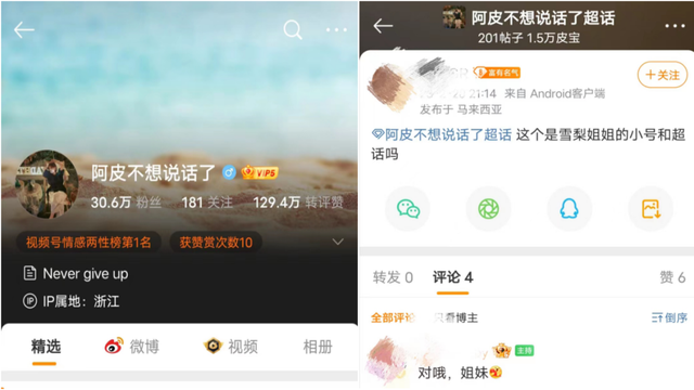 在微博上,雪梨还疑似注册了“阿皮不想说话了”。目前,该账号已经发布了上千条微博,累计粉丝数超过30万。