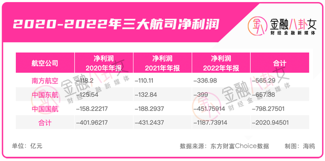 三大航连续三年亏损都超过500亿,合计已经亏了2020.95亿: