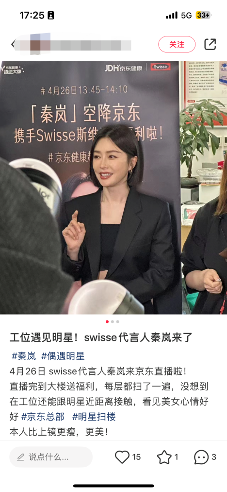 8月22日,秦岚在小红书上分享了最近小半年的“秘密武器”——Swisse PLUS NAD+细胞焕活瓶。据她分享,坚持了一段时间后,“肌肤就像坐了时光机一样,看起来紧致还透亮”。