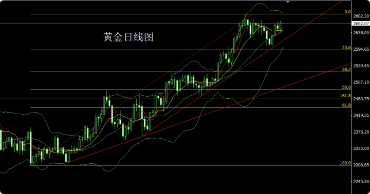 黄金消息面分析:周二(10月15日),延续昨日的调整,早盘金价在2638附近找到支撑,欧盘行情展开反弹,目前交投于2653附近。当前的市场处于复杂的宏观背景中。黄金作为避险资产,一直以来受益于全球局势动荡。中东局势的紧张为金价提供了短期支撑,然而,由于市场预期不会在短期内采取大幅宽松的政策,美元继续走强,削弱了黄金的吸引力。总的来说,黄金价格短期内可能会在避险情绪和强势美元的交织中维持震荡格局,建议投资者密切关注市场动态,灵活调整交易策略,以应对未来可能出现的波动。