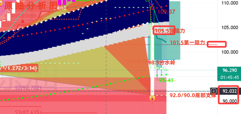 【个人建议:高空为主;WTI分水岭:98.5/桶!以上观点,仅供参考;分散合理布局,严控风险!关注笔者投资不焦虑,交易有方法】