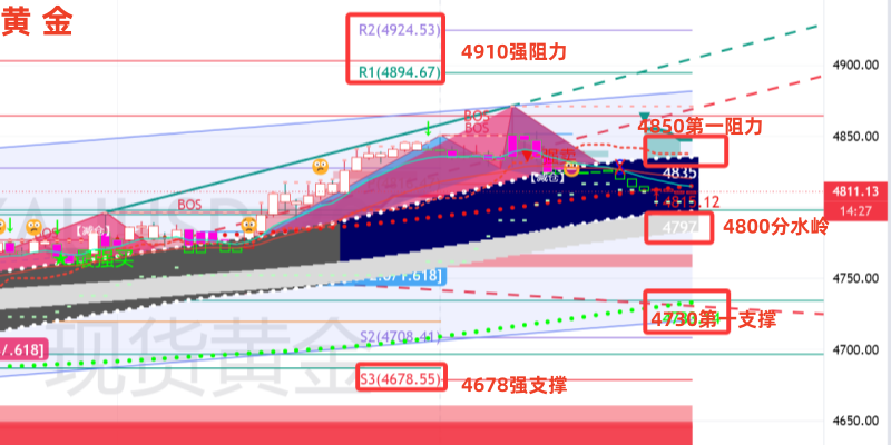 【个人建议:高空为主。GOLD分水岭:4800美元/盎司!以上观点,仅供参考;分散合理布局,严控风险!关注公-准号:(金油神策)为大家提供更多有价值的信息】
