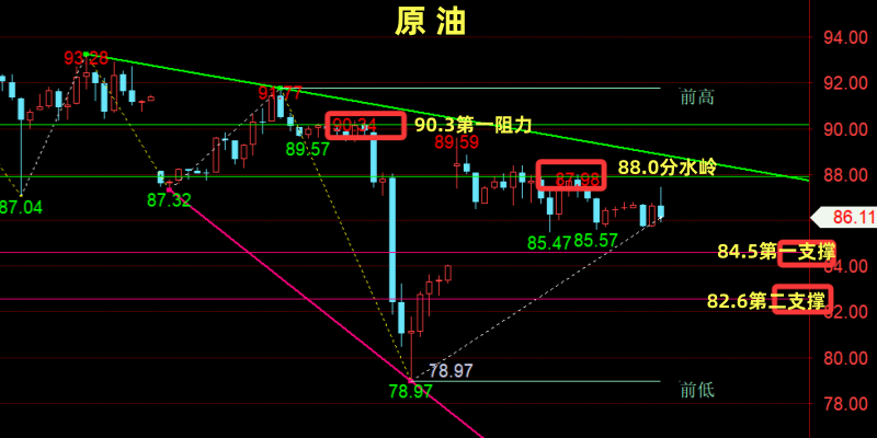 【WTI分水岭:85.5/桶!以上观点,仅供参考;分散合理布局,严控风险!关注笔者投资不焦虑,交易有方法】