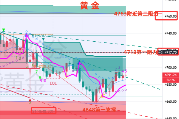 波动建议:激进反弹4718±3空,稳健4766±3进场,损各15美金,目标4650破位持有!