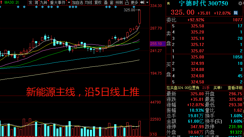 比亚迪再次涨停,宁德时代大涨12.07%,市值突破7500亿,这架势看来是要往万亿上面干。市场成交8000亿,吸虹效应明显,不在主线不属于行业龙头的只能眼巴巴的看涨别人大赚特赚。