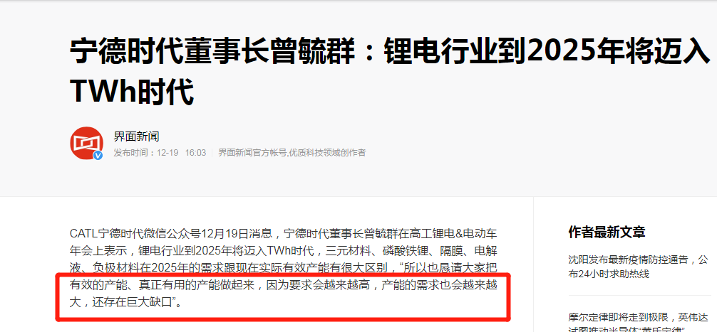 还有就是宁德时代董事长曾总在高工锂电年会上说的:目前新能源有效产能和需求还存在巨大的差距。意思就是大家赶紧干活,新能源发展太好了,要不然满足不了市场的需求。这也是宁德时代今天大涨的直接原因。宁德这个气势,很有可能上万亿。