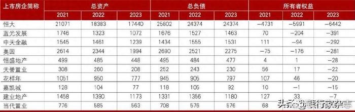 注:因成稿时中国恒大、当代置业2023年年度财务报告仍未发布,表中数据来源于2023年上半年财务报告。