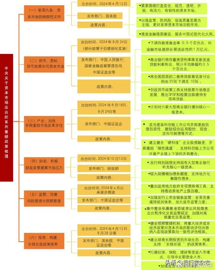 针对资本市场,党的二十届三中全会与中央金融工作会议、新“国九条”对资本市场的改革部署一脉相承(见图2),指出“健全投资和融资相协调的资本市场功能,防风险、强监管,促进资本市场健康稳定发展”,资本市场或迎来新的起点。展望未来,以下五个改革方向与商业银行发展高度相关。