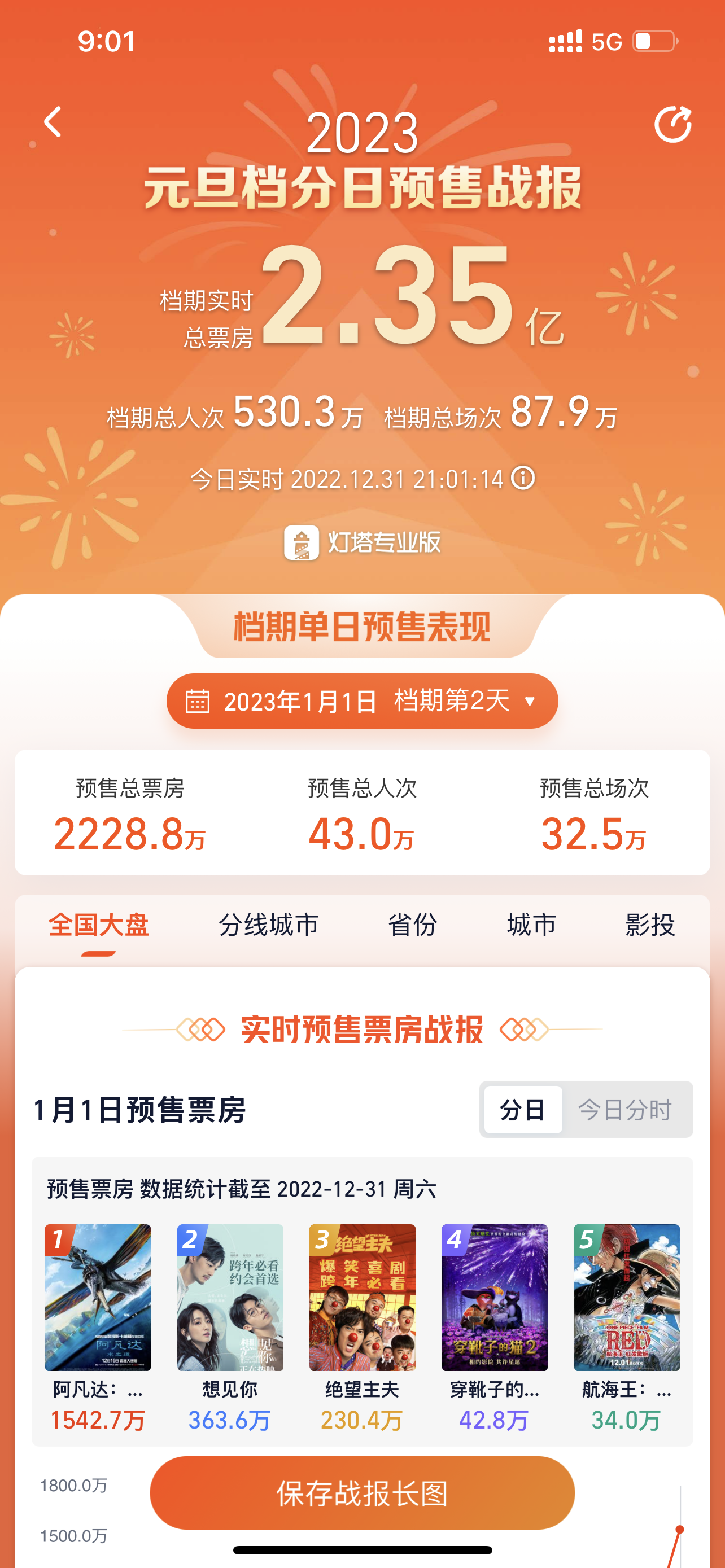 阿凡达2票房破9亿 图源:灯塔专业版