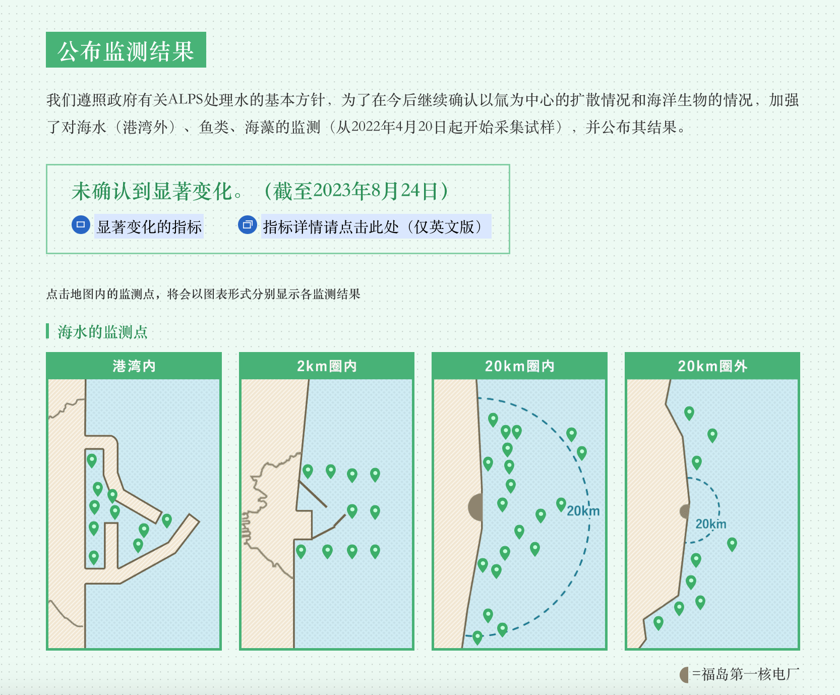 在东京电力建立的“ALPS处理水网站”上,提及了海洋生物的养殖实验,即通过24小时直播的形式查看所排放的水对海洋生物没有影响。但美国全国海洋实验室协会于2022年12月发表声明指出,日本缺乏足够和准确的科学数据来支持其安全保证,而有充分的数据支持排放核污染水的严重后果。