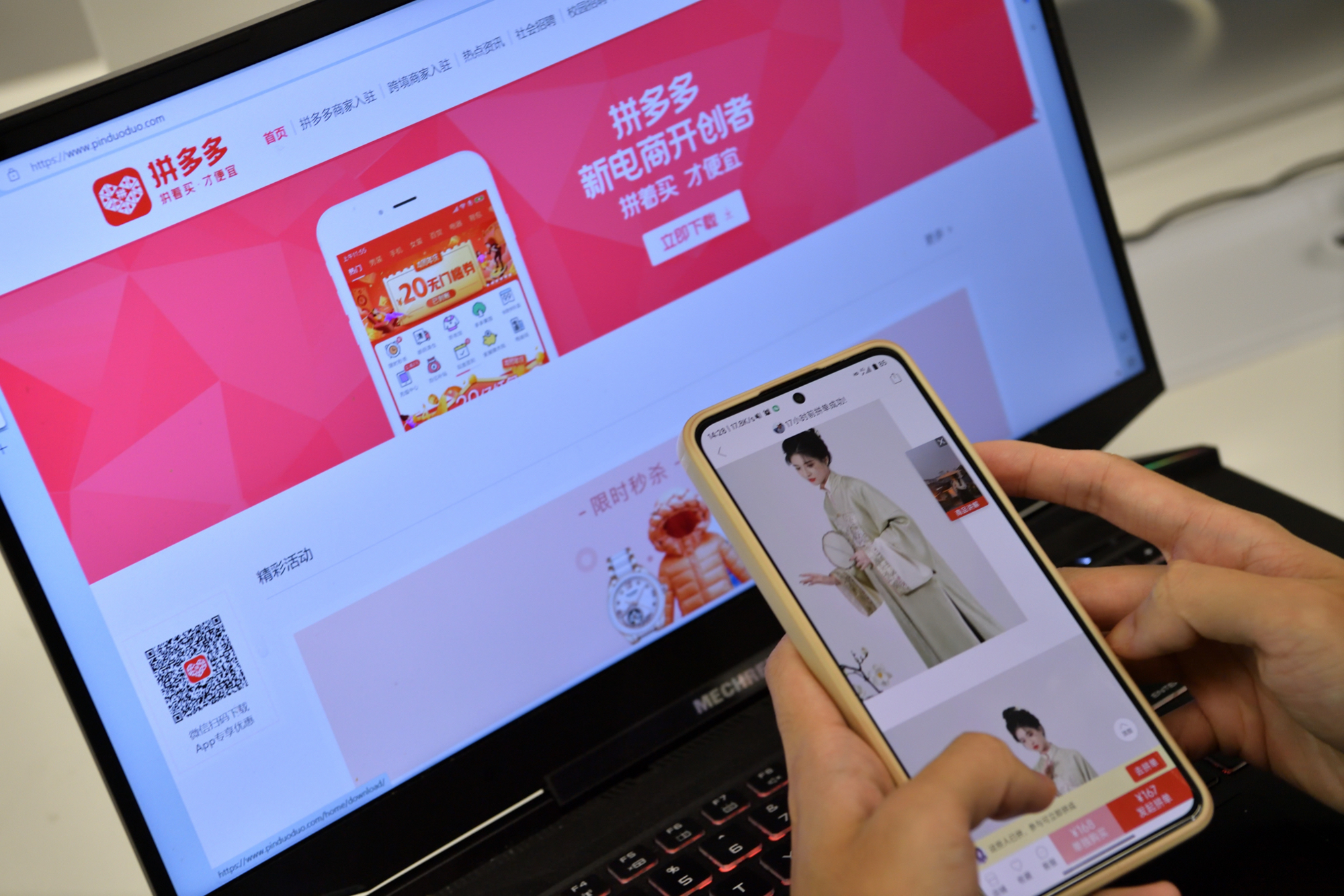 加入拼多多后,织造司的受众群体也进一步扩大。梁润发介绍,在他的认知里,汉服的受众群多是90后、00后,以30岁以下人群为主。在拼多多开店后发现,30岁以上的高知女性消费群体也会选择这个品类,这一群体的消费占比甚至可以达到50%。