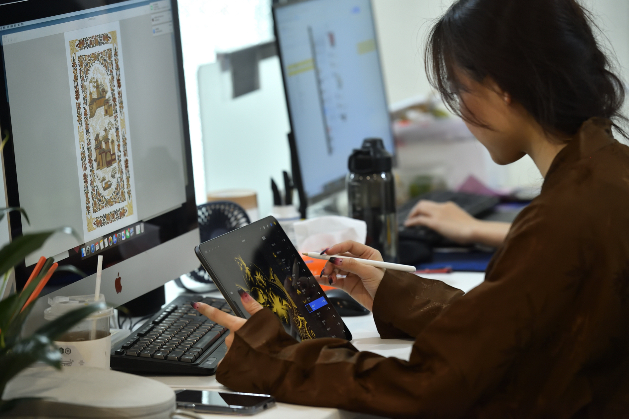 为复原这种繁复而精美的织造工艺,织造司团队多次到南京云锦原产地寻访非遗传承人,并和纺织专家进行研讨。最终团队研发出了具备专利的、能近乎完整复原云锦工艺的生产设备。
