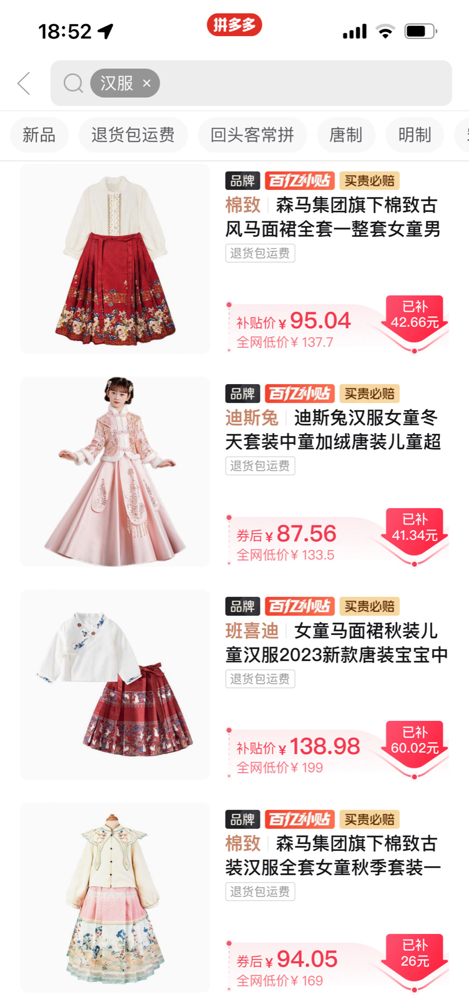 汉服从小众文化向大众审美“破圈”,也带动了电商平台“国潮”经济的兴起。拼多多数据显示,今年双十一大促之前,入驻百亿补贴的品牌汉服商品增长了10倍以上,秋冬款的儿童汉服产品同比增长超过340%。