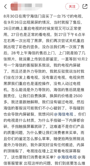 海信深陷售后纠纷,消费者不满质保期内的电视要高额自费维修