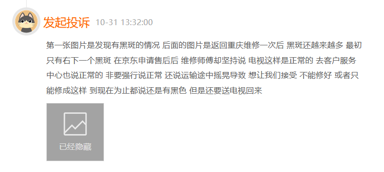 在黑猫投诉平台上,有投诉者指出屏幕外观是光滑、无碰撞痕迹的,售后却鉴定为人为损坏。还有投诉者对于海信售后无法修好电视感到不解。
