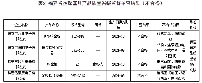 251批次按摩器抽检不合格:南极人、361°、荣事达等品牌上榜