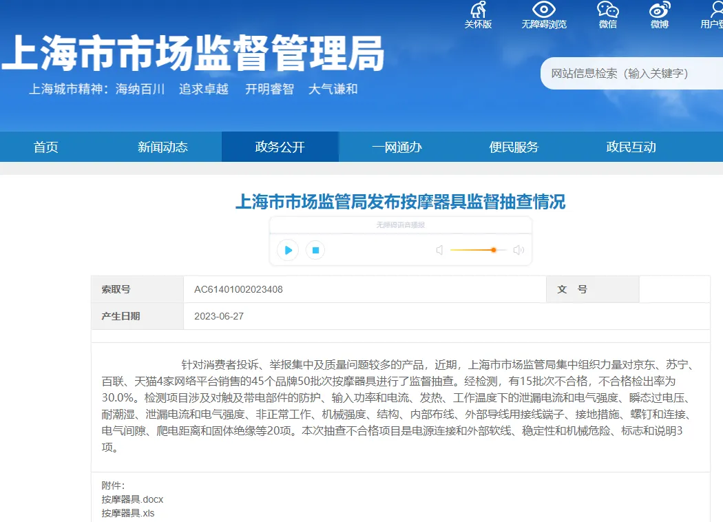 市面上的按摩器具种类繁多,消费者青睐也带来按摩器具市场的需求提升。但按摩器具漏洞等安全事故的报道也不断增多,各地监管部门近年来加大了对这类产品的抽检力度。