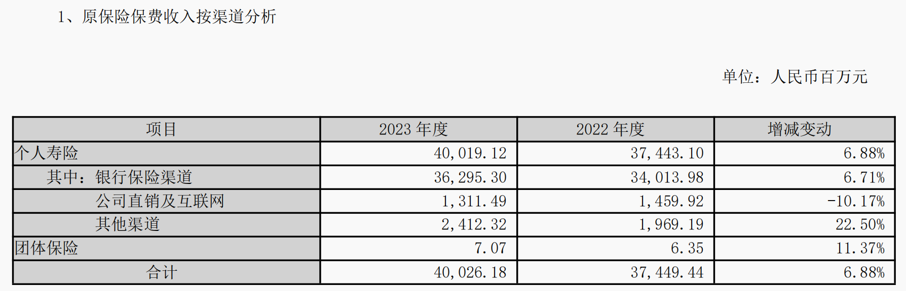 国华人寿2023年保费收入403.78亿元,同比增加6.76%,其中寿险391.74亿元、健康险8.47亿元、意外险0.05亿元。23年赔付支出30.27亿元,同比增加53.57%,其中寿险赔付支出25.10亿元,同比增加71.88%,年报中表示主要由于满期给付增加。