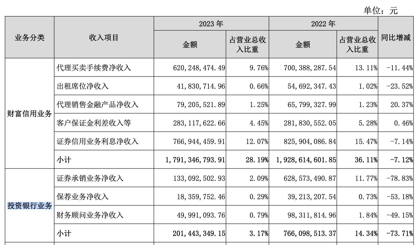 2023年国元证券股权业务下滑