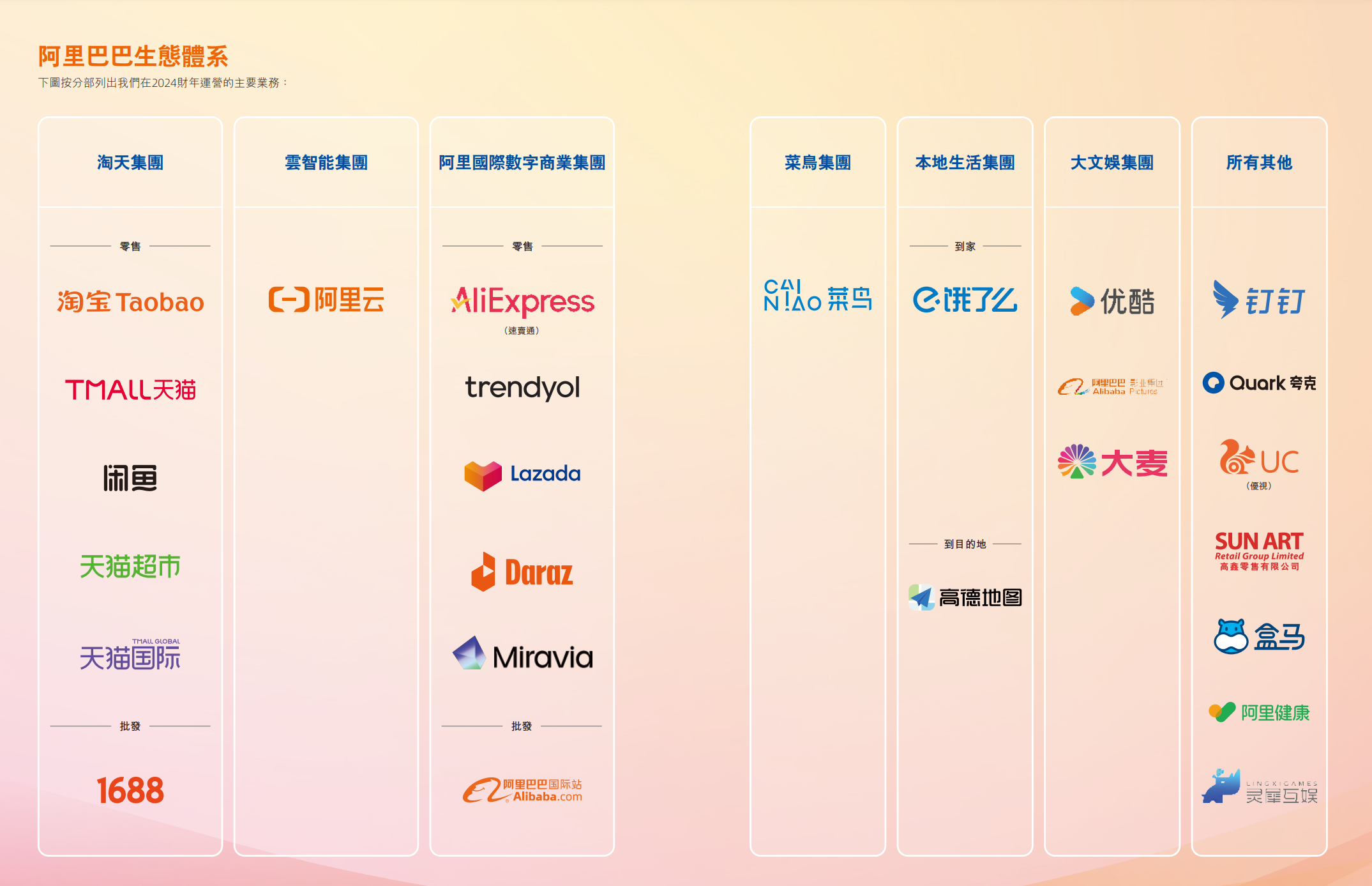 (阿里巴巴生态系统,图源:阿里巴巴财报,截至2024年财年)