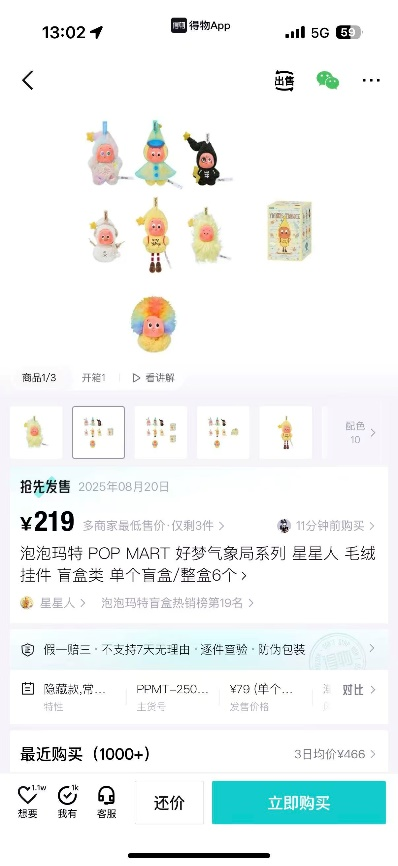 在此背景下,二级市场迅速跟进。千岛App数据显示,星星人整盒成交价最高达到1350元至1450元,溢价接近三倍;隐藏款售价则攀升至478元,溢价超过六倍。得物App数据显示,在该平台,星星人系列8月单月售出近2.5万单,累计售出近5万单。