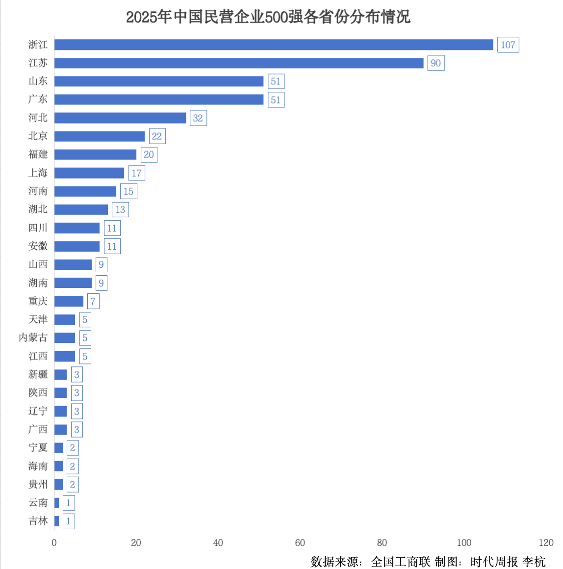 民企500强哪家多:浙苏位列前二,粤鲁并列第三