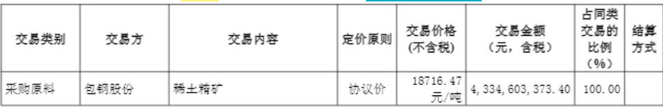 今年7月10日及10月10日晚间,包钢股份与北方稀土双双公告,宣布上调稀土精矿关联交易价格。