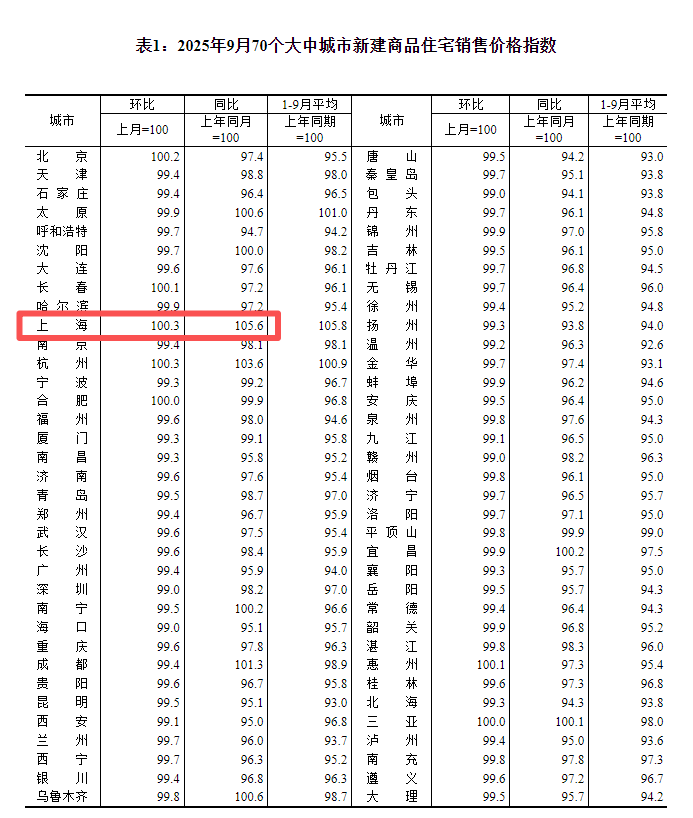 10月20日,国家统计局公布2025年9月份70个大中城市商品住宅销售价格变动情况。数据显示,9月份,各线城市商品住宅销售价格环比下降,同比降幅继续呈收窄态势。
