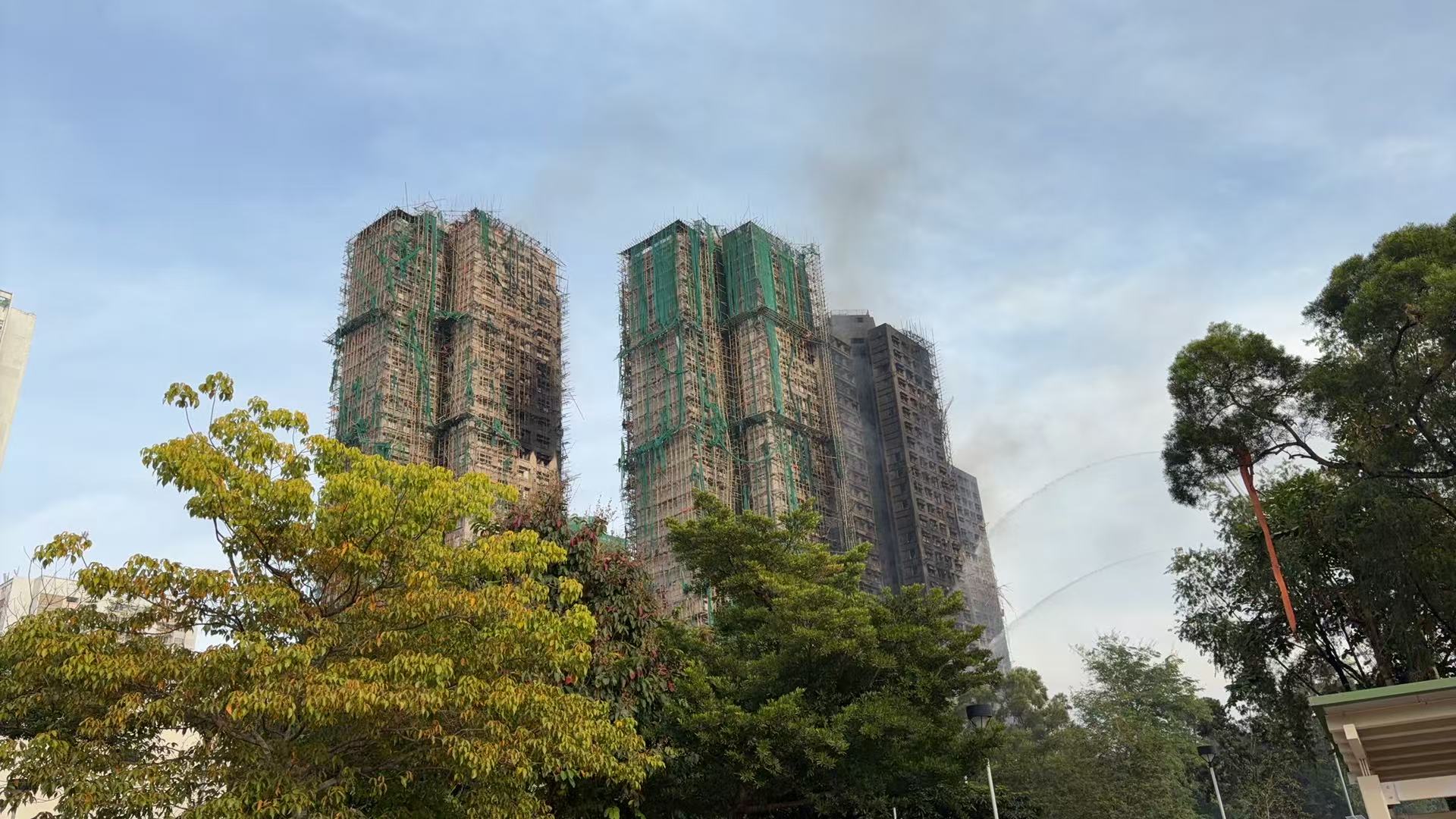 香港大埔宏福苑火灾现场(图源:时代周报记者 傅一波/摄)