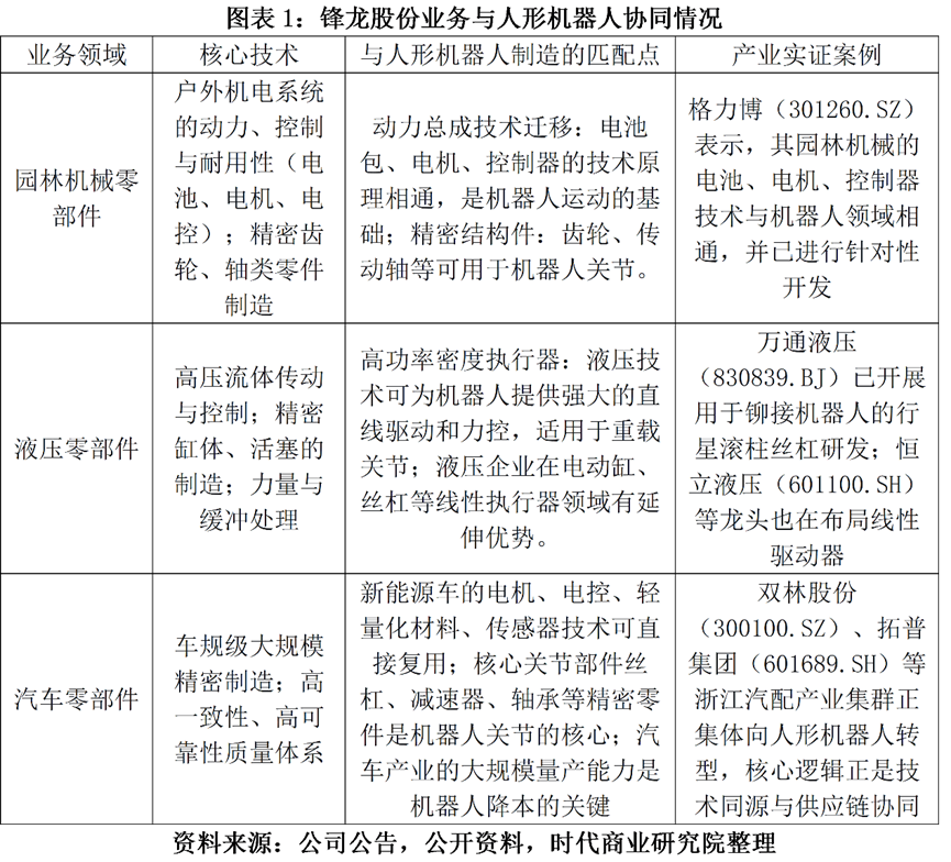 锋龙股份的价值正在于此。该公司具备成熟的精密制造能力,其在园林机械零部件、液压零部件、汽车零部件积累的精密铝压铸、电机组件和精密机加工能力,与人形机器人关节、灵巧手、结构件等核心硬件的制造要求契合度较高。市场已不乏实证案例。